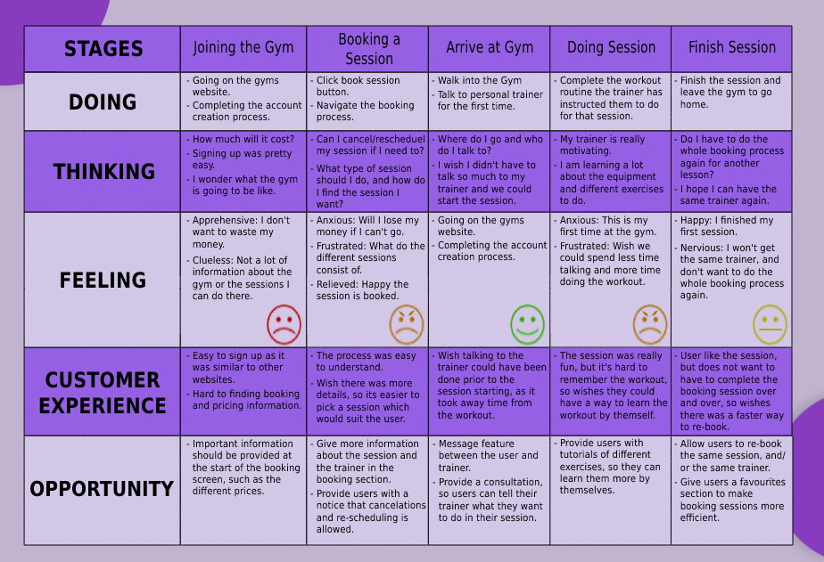 Before booking users are presented with general information about the classes, such as the times and class level along with a detailed description of the class. As well as information about the trainer. Once sessions are booked users are able to view the upcoming sessions through their profile, and also have the ability to cancel or reschedule their currently booked sessions.